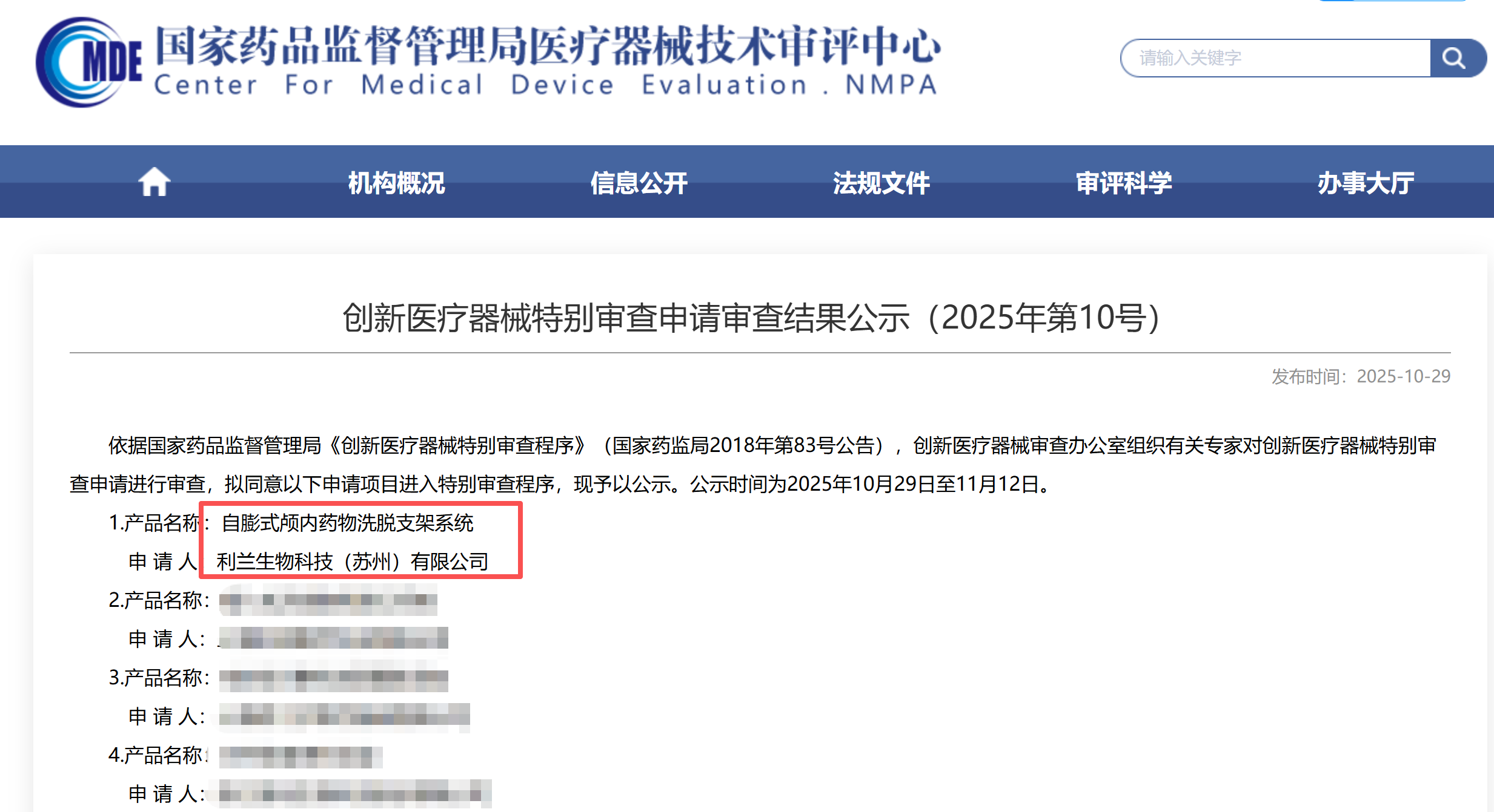 里程碑????????? 奧泰康助力【自膨式顱內(nèi)藥物洗脫支架系統(tǒng)】通過創(chuàng)新審批[煙花][煙花]近日,利蘭生物科技(蘇州)有限公司自主研發(fā)的產(chǎn)品【自膨式顱內(nèi)藥物洗脫支架系統(tǒng)】正式進(jìn)入國家創(chuàng)新醫(yī)療器械特別審批程序(綠色通道),奧泰康提供創(chuàng)新申報服務(wù)。